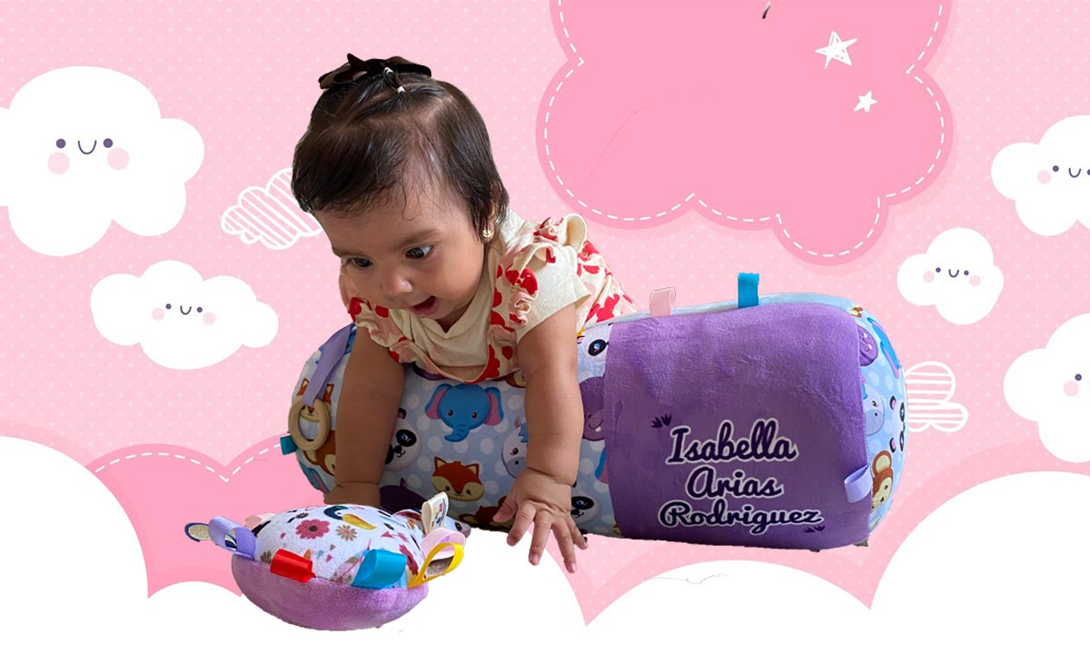 Nuestros juguetes personalizados están diseñados específicamente para cada etapa del crecimiento de tu bebé, garantizando una estimulación adecuada. Con materiales textiles seguros y personalizados con el nombre de tu pequeño, proporcionándote la tranquilidad que busca