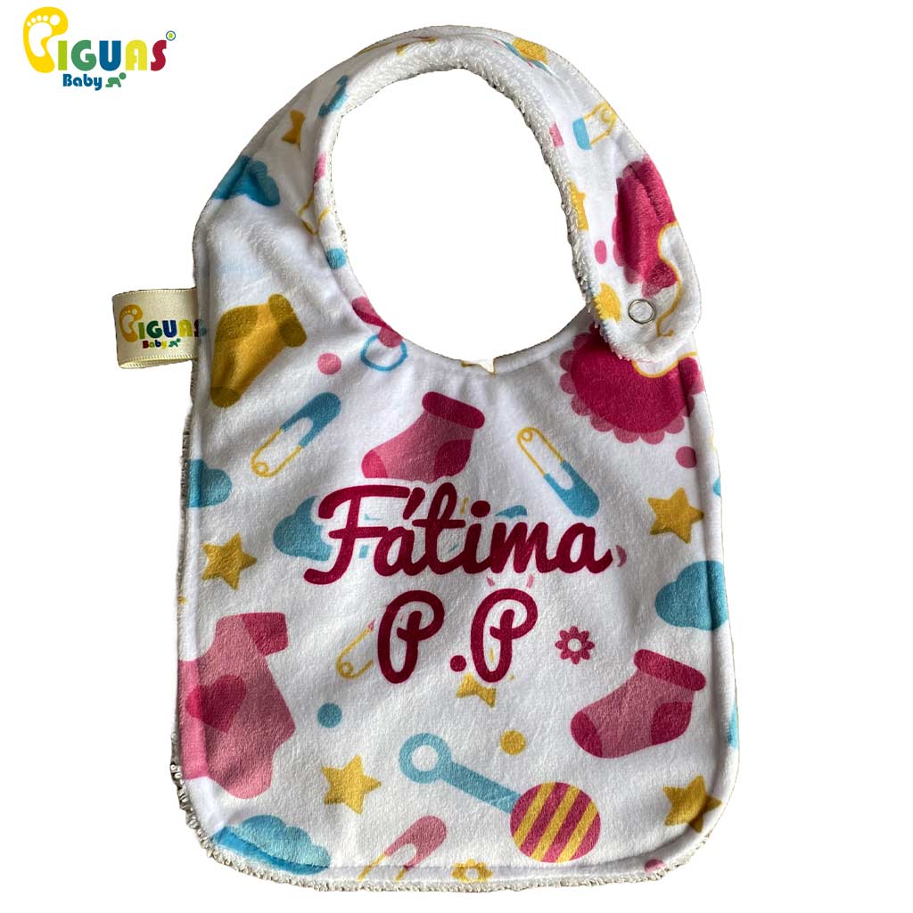 - Materiales: cada babero esta hecho con telas suaves de la mejor calidad. Trae incorporado una tela anti fluido, evitando filtraciones de liquido a la piel o ropa de tu bebé. La tela de contacto con tu bebé esta hecha de tolla de microfibra, haciéndolos suaves al momento de limpiar la delicada piel de tu chiquito. Tienen diseños llamativos y vibrantes. Con nuestros babero personalizados haz que cada comida sea una aventura divertida y única.